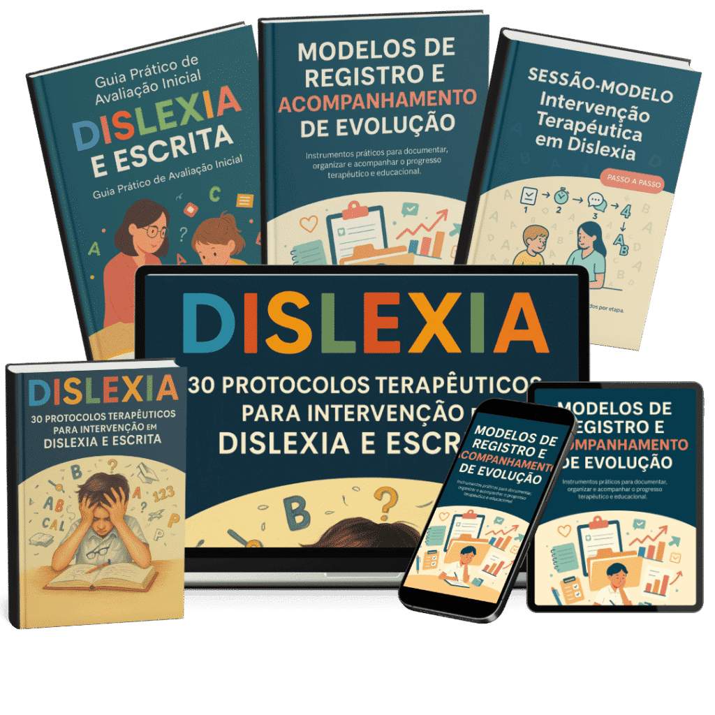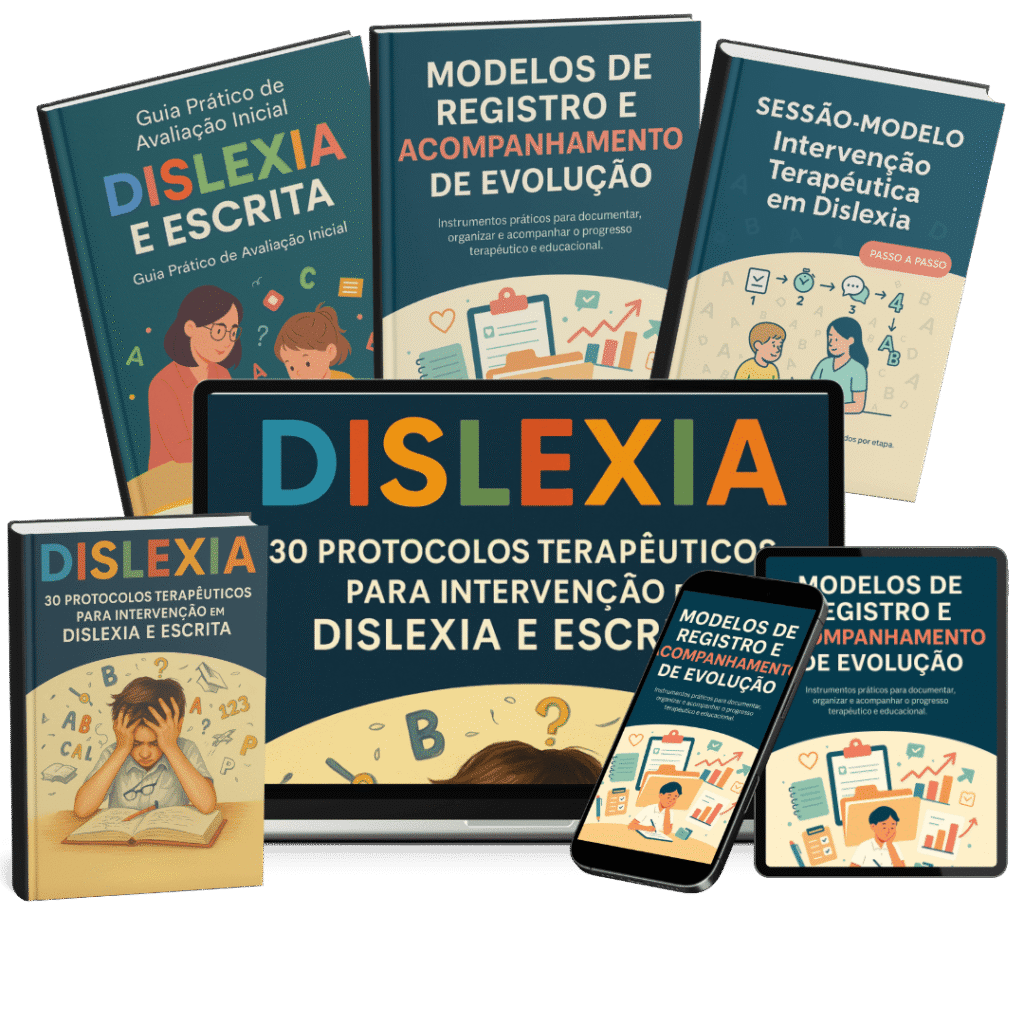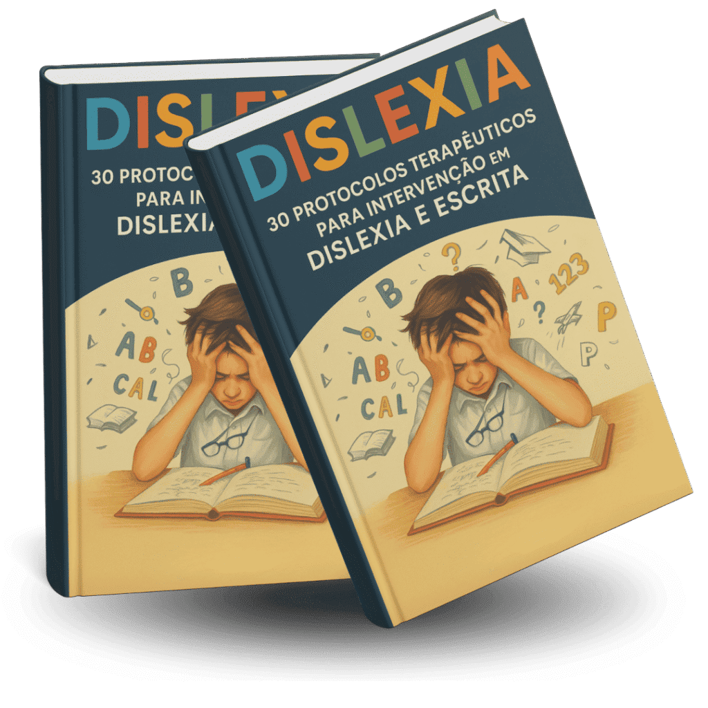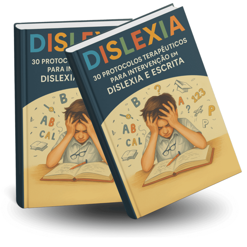 Protocolos práticos e organizados para reeducar a leitura e escrita em crianças com dislexia tudo passo a passo, de forma clara e eficaz.